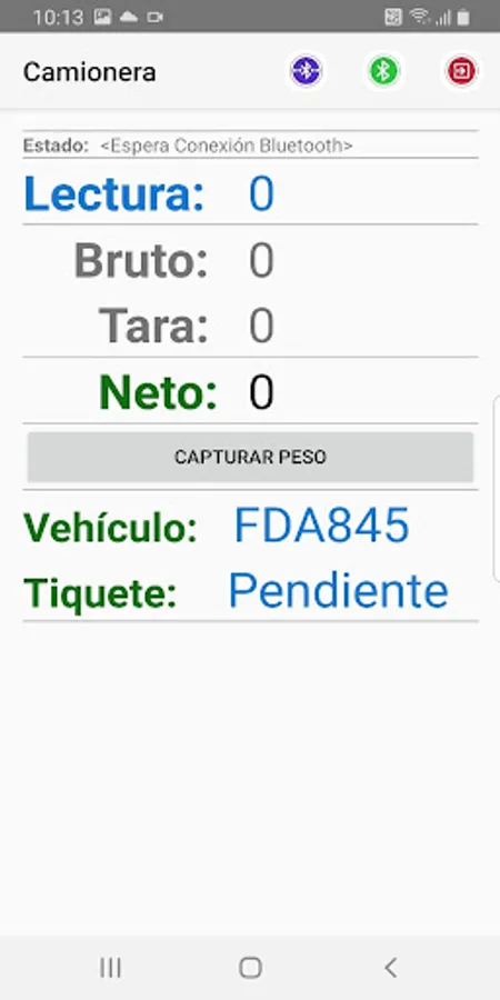 This application controls truck scale movements (Bluetooth connection to scale indicator) which occur in 2 stages: Initial weighing and Final weighing. In some cases the tare of the vehicle is already known, in that case only a single movement is recorded. In the second weighing, the application generates the ticket printing on the printer linked by bluetooth.