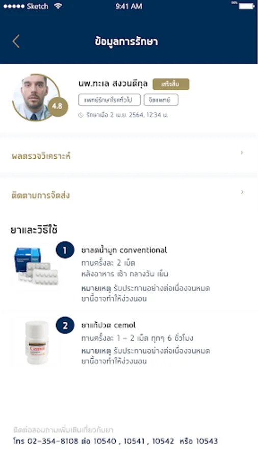 Another option that will meet the needs of an era where we have to have Social Distancing or patients who are not convenient to travel to see a doctor at the hospital. In addition, patients can look up their medical history in the laboratory results section. , History of taking medicines via this application easily and comfortably.