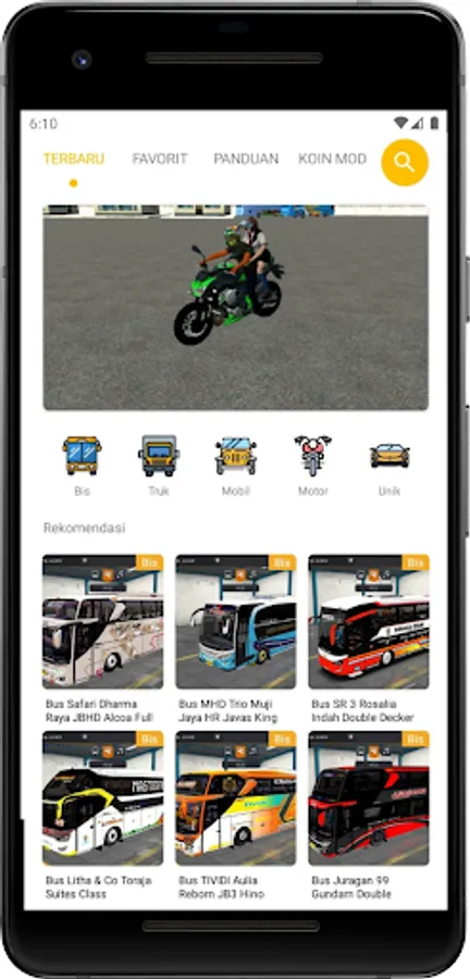 This application has several categories according to their type, such as cars, motorbikes, trucks and buses. more than 400 ++ mod collections that already exist in this application and will continue to be updated. This application is also complete with livery so that the appearance of the vehicle will be more attractive than usual.
