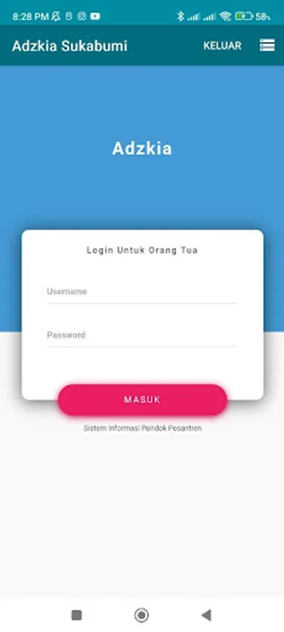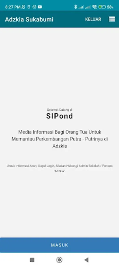 This application is a boarding information system application that is provided for parents/guardians of students to make it easier to monitor their children at Adzkia Sukabumi. This application provides some information such as achievements, grades, pocket money, tuition fees, tahfidz, dormitories, violations and so on.
