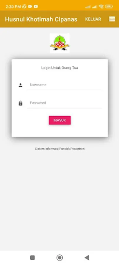 This application is an information system provided for parents / guardians of students to make it easier to monitor their children at the Husnul Khotimah Islamic Boarding School Cipanas Cianjur. This application contains some information such as grades, tuition fees, boarding, violations, tahfidz, achievements, pocket money and so on.