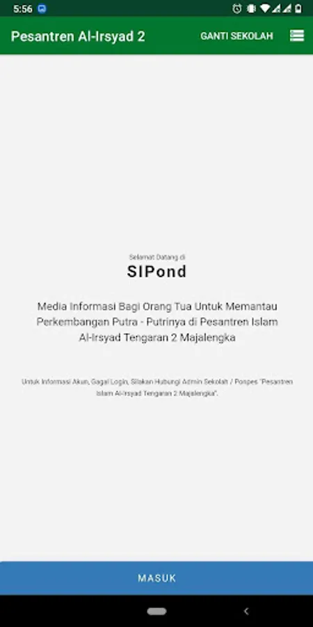 The SIPIAT2 application is an application aimed at parents and guardians of students at the Al-Irsyad Islamic Boarding School Tengaran 2 Majalengka. This application is in the form of information about the development of tuition fees, pocket money, tahfidz, achievements, grades, boarding, violations, and so on.