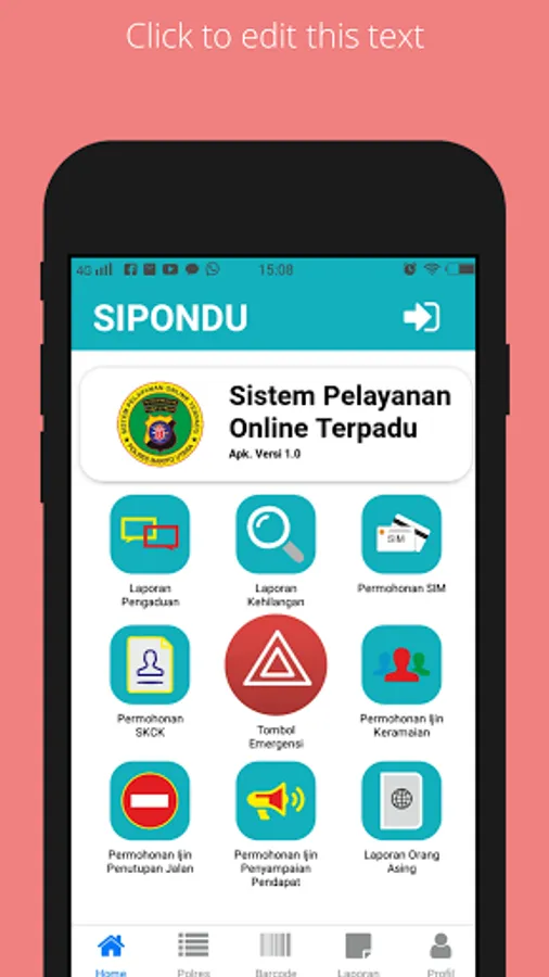 Integrated Police Service Center online web-based and android application. This application is a form of innovation from the North Barito Police in the field of community service. You can apply for the Police Service via your computer or smartphone whenever and wherever you are.
