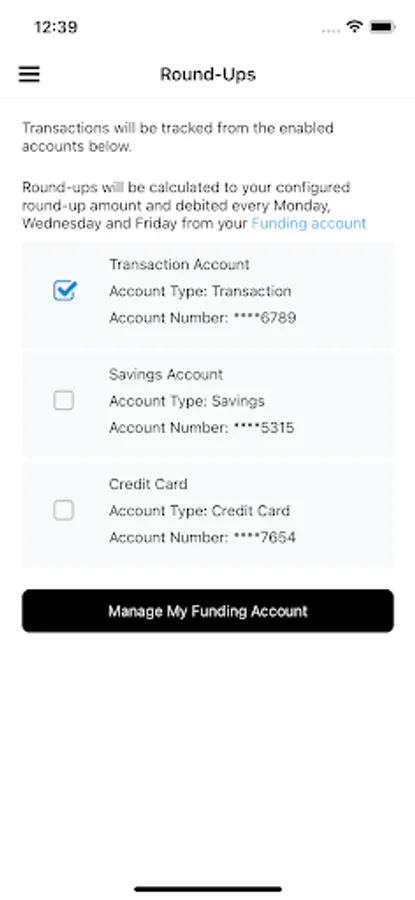 - Select the accounts you wish to calculate round-ups on your purchases from