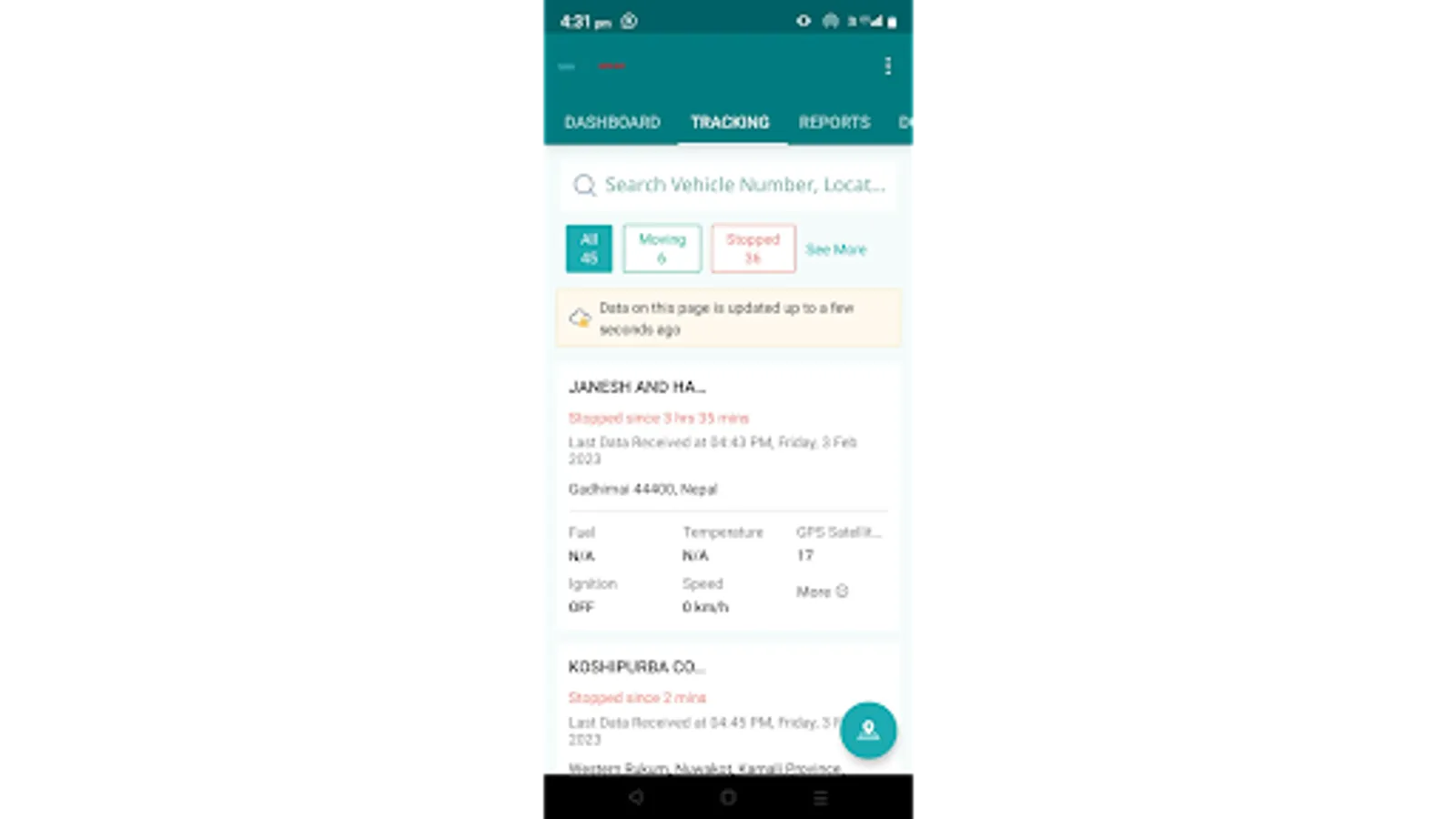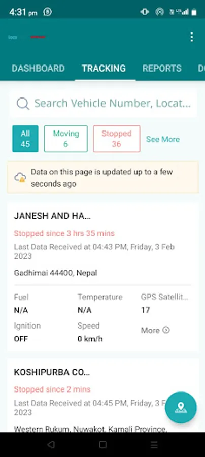 - Real Time Fleet tracking