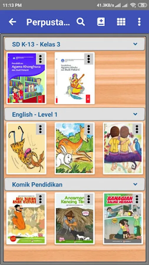 Cerita Story Books: These are story books grouped by level (level 1 to 4). The higher the level, the more number of words and sentences in one book. Level 1 books are very suitable for preschoolers or those who are still in elementary school. These books are grouped again by language, including: