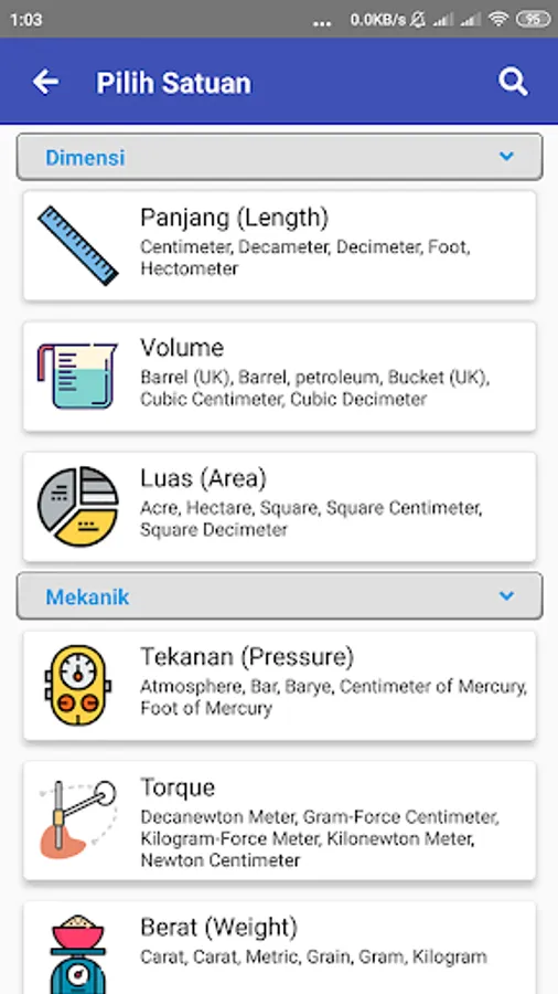 ★ Conversion: Is a module for converting between units (Length, Volume, Area, etc.). More than 30 groups and 500 units can be converted from this module.