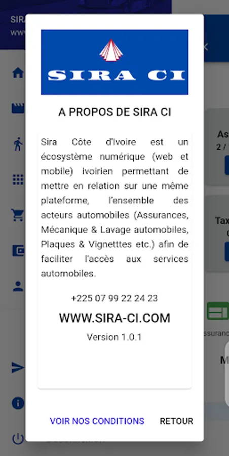 Welcome to Sira Côte d'Ivoire, a digital ecosystem (web and mobile), allowing to connect on the same platform, all the actors and automotive services in Côte d'Ivoire in order to facilitate their access to users. Please note that Sira Côte d'Ivoire is a private project and is not affiliated or supported by any government.
