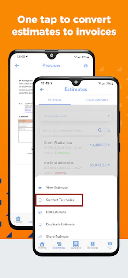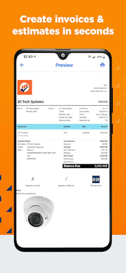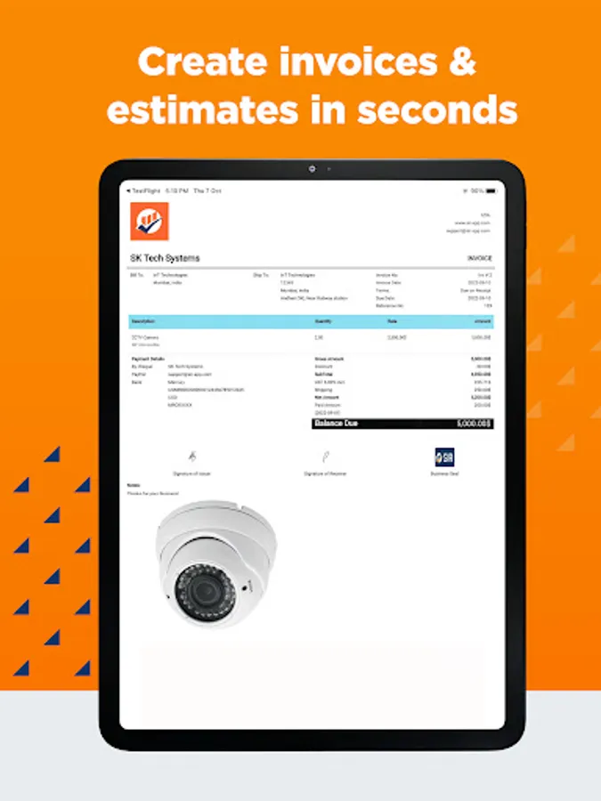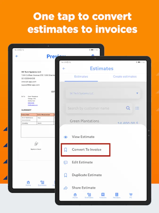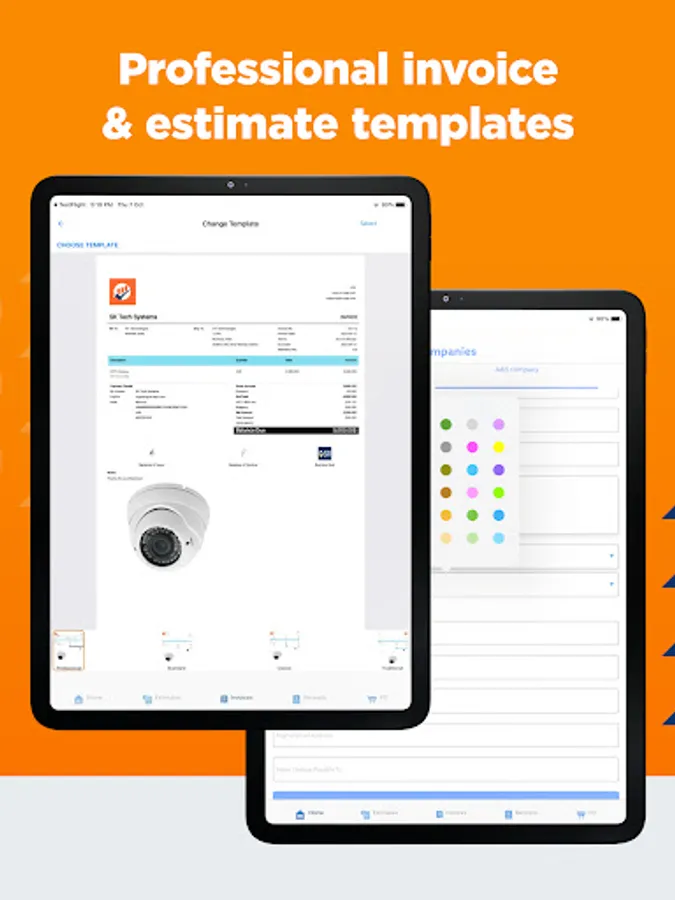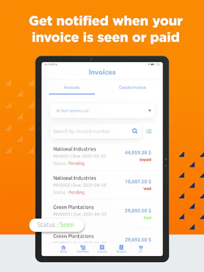 Create instant invoice via professional invoice maker with templates to include your company logo, brand color, and information. Send invoices quickly before leaving your customer. Use the pre-existing invoice templates and receive a read notice.Use Inventory Tracker for Inventory Management
