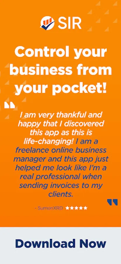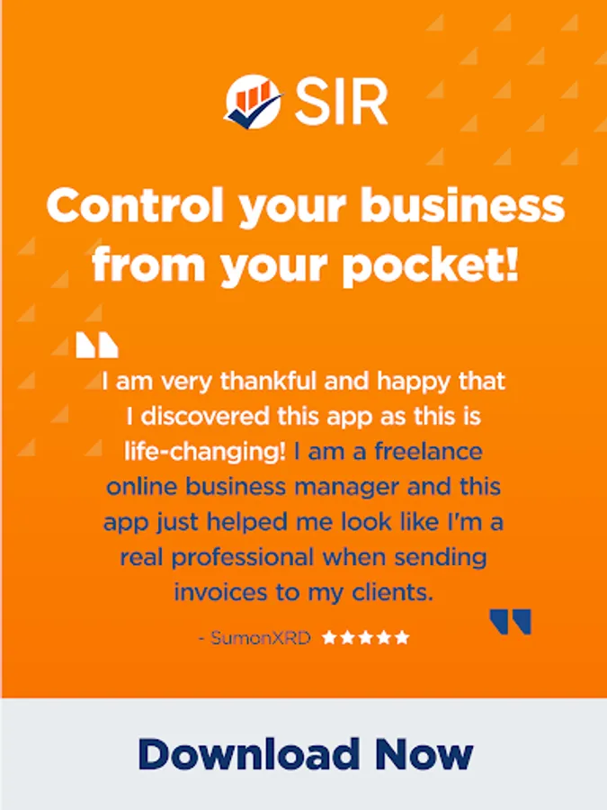 SIR is the all-in-one business manager for small businesses, freelancers, contractors, agencies, and more! Manage your business and get paid faster with our invoice maker, estimate generator, receipt maker, estimate maker, invoice generator, and inventory tracker mobile application.
