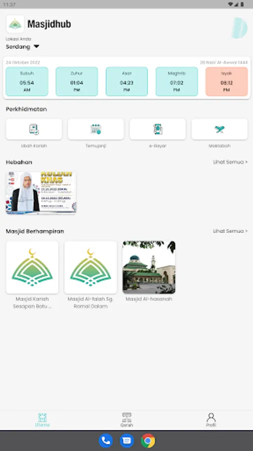 A mobile app developed by well-experienced developer to connect and provide the utmost benefit of Masjid and its Member surrounds it. For almost more than 7 decades, all 60 major programs in Mosque delivered via manually and less IT-utilized ways. With MasjidHub, the new revolutionary will start and the digitalization of Mosque is able to be took place. With the R&D of more than 2 years, MasjidHub able to justify and address the key area which need to simplify and effectively implemented by the utilization of a dedicated system as well responsive mobile apps.