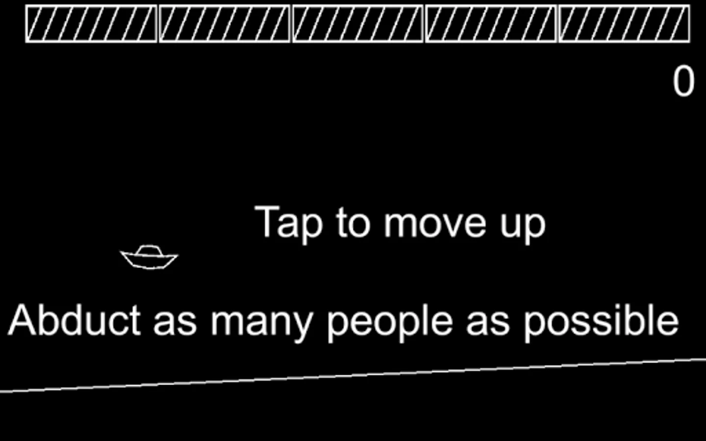 A game developed for the Flappy Jam (http://itch.io/jam/flappyjam). Jump through the the obstacles using just the touch of your finger and abduct as many humans as you can. Graphics are inspired by vectorial classics.