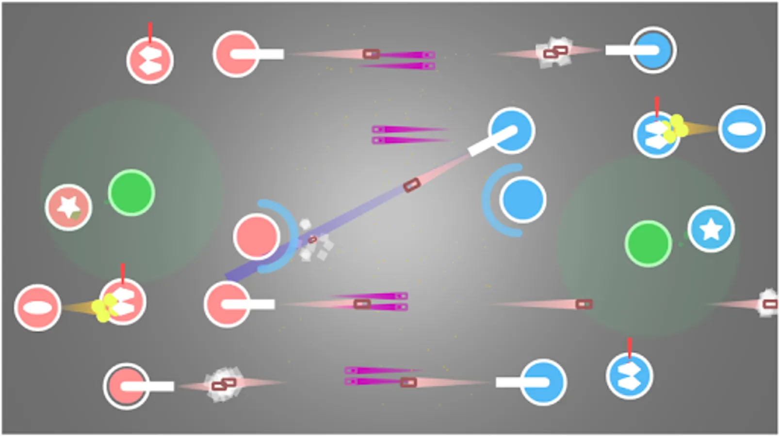 Manage gun platforms on your side of the screen to overcome the enemy's side. Your commander mines the asteroid and generates money, which you can spend to buy new platforms. You'll have to move and rotate the platforms and use their special abilities to destroy the enemy commander.