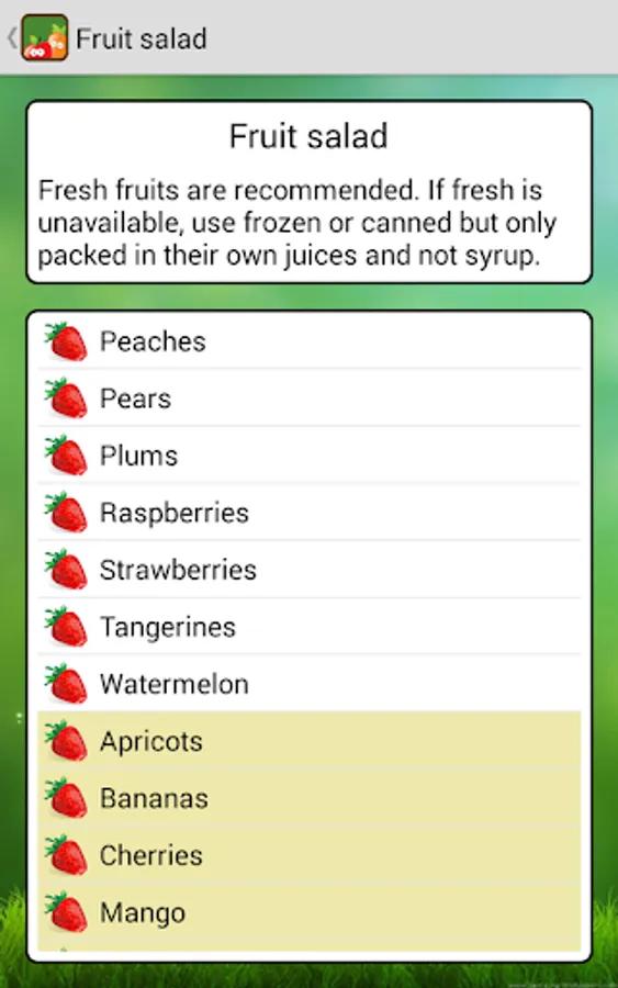 * Having a detail of all possible varieties of a certain item. For example, the fruit recommended or not recommended
