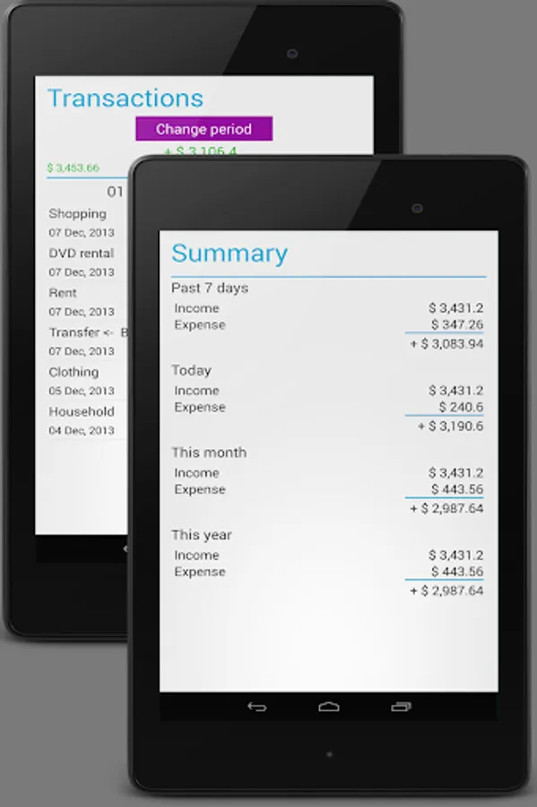 -- Visualise the statistics graph and see where your money has gone by categorising all incomes and expenses, Payees, Monthly Income, Monthly Expense, Budget vs Expense, Income vs Expense, Income vs Expense vs Budget