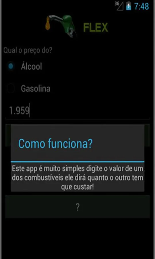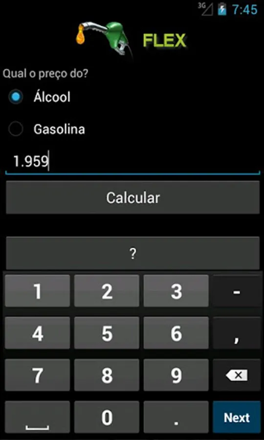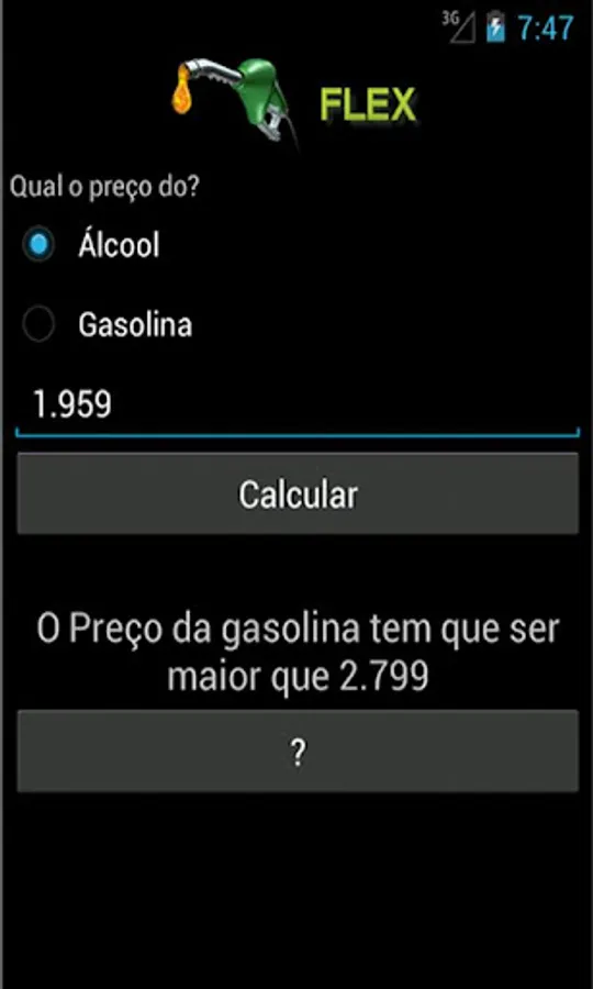 Application to help in the decision to supply the car with fuel (gasoline or alcohol). The difference between this software is that you need only enter a value. Enter the price of gasoline or alcohol, if you value the digital station is shown as the amount of alcohol should cost for a ratio of 70%.