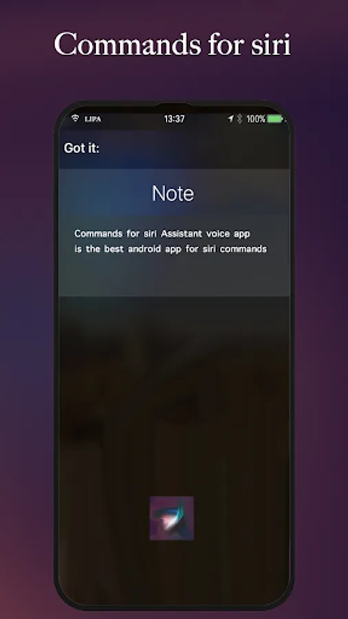 - Note that this Voice Commands for Siri App is only giving some useful information, commands and guide about Siri assistant app and there are not siri in android and no apk app for siri to date.