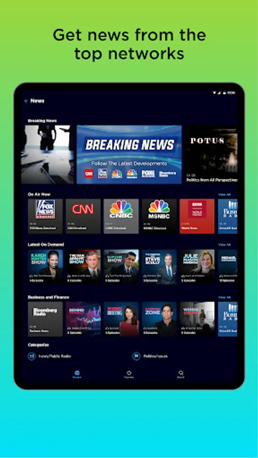 - FOX News, CNN, MSNBC, Bloomberg Radio, & more for the latest news