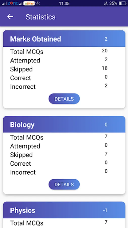 6. You will get detailed analysis of your performance; correct, incorrect and skipped MCQs.