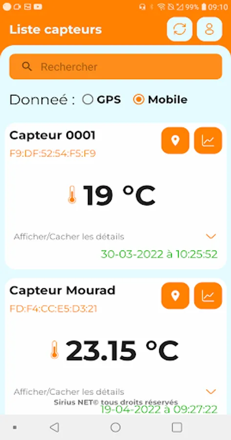 This application is intended for the cold chain manager. It is possible to remotely monitor the temperature, humidity level, luminosity in the cold room/warehouse, truck or refrigerated trailer...