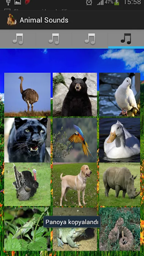 This application for Android offers exceptional quality are many and various animal sounds . This is a good time to spend with the kids or just an excellent application for bit of a laugh with your friends ! With this educational application for young children , animals introduced to teach your baby or toddler , and they are coming to do . Also, the keyboard year boy animal characters ( Three Little Pigs, The Lion King , etc. ) and lets the gripping story ..