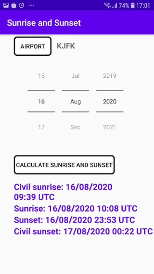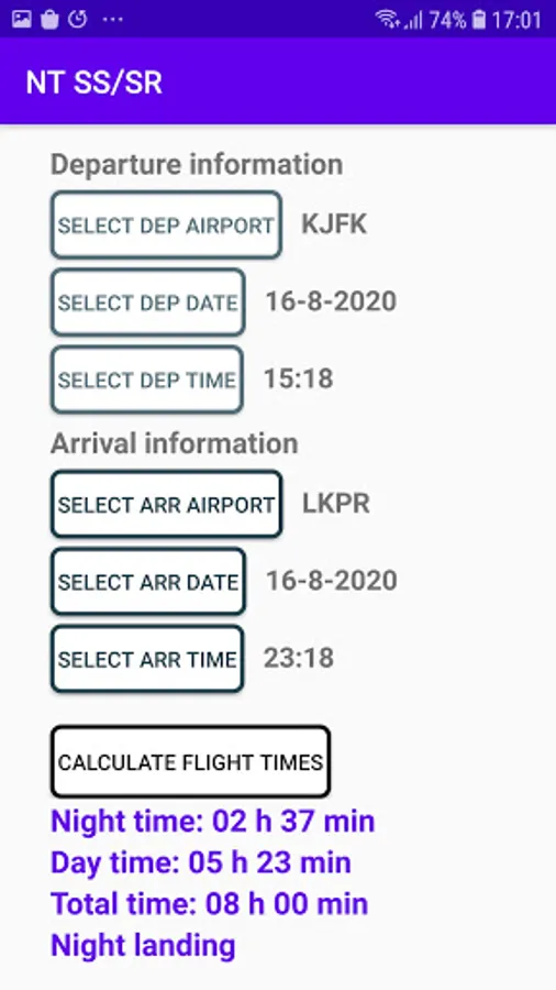 This offline application enables pilots to determine their night flight time. All you need to do is just to set the place and time of departure and arrival.