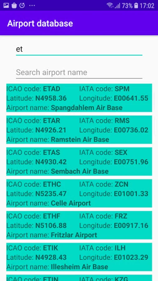The source of the default airport database used by the app is openflights.org. If the airport you need is missing you can create it in the user's database.