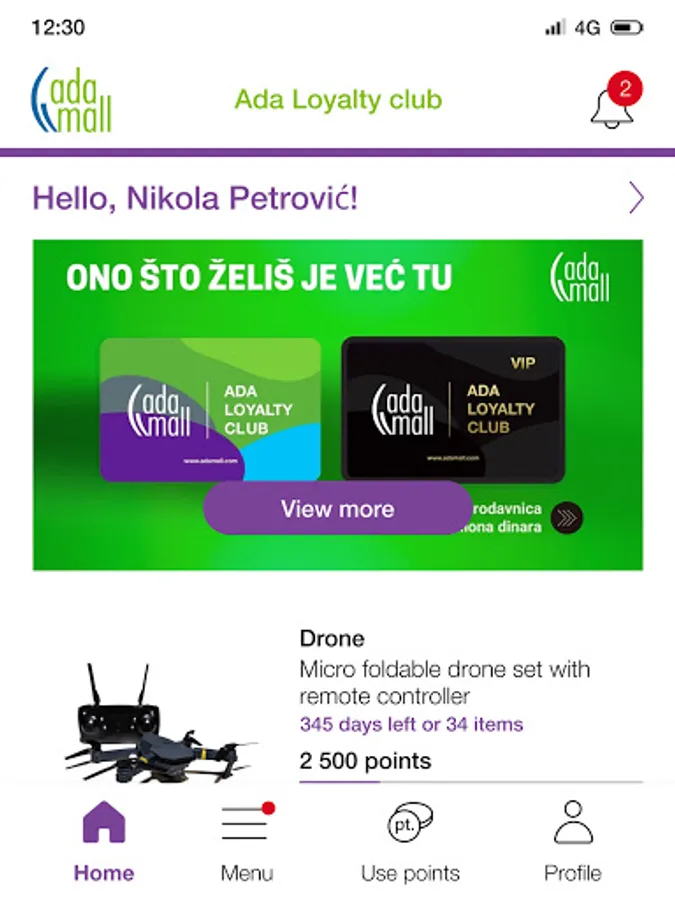 Ada Loyalty Club will let you collect points for every purchase. After collecting enough points, you can shop for merchandise.
