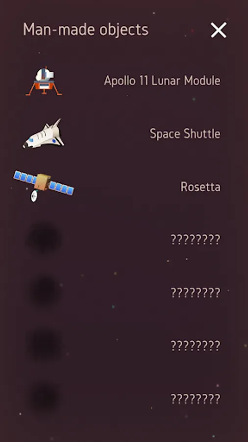 Unlock cosmic objects which give you certain advantages in the game, collect points and start cosmic event and collect man-made space objects like the space shuttle!