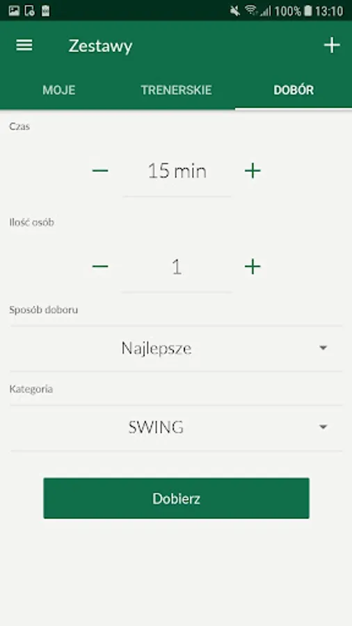 You can also create or automatically generate sets of exercises that you can use during your training.