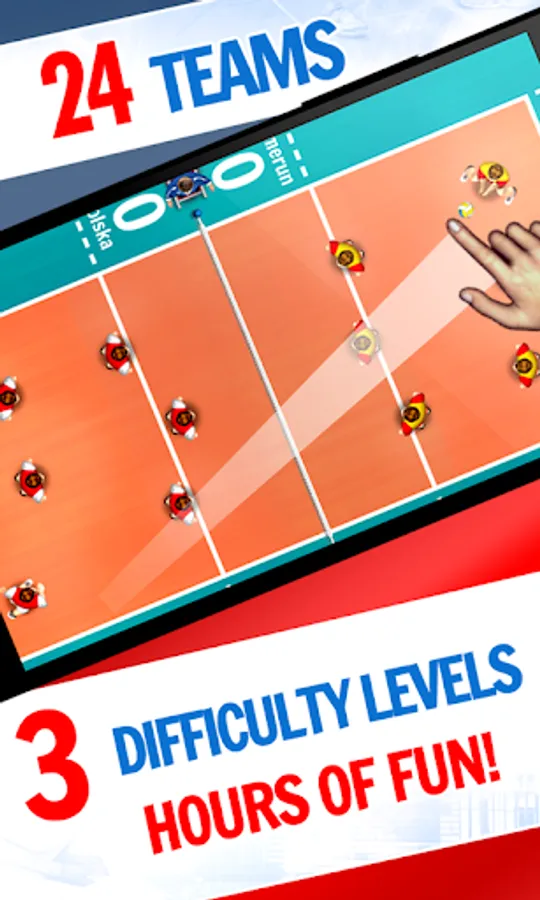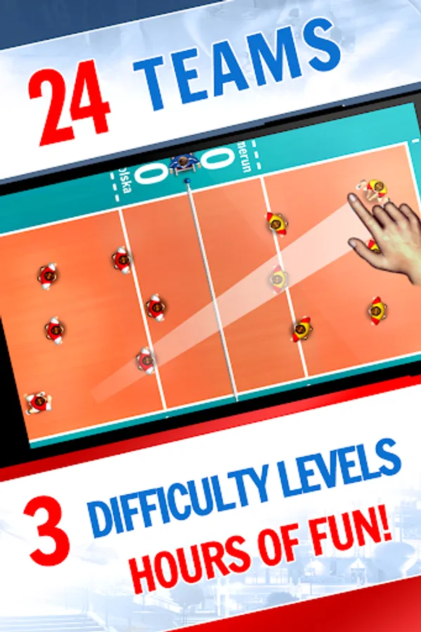 24 teams, 3 difficulty levels, official competition rules, you will find all this and much more in Volleyball Championship 2014.