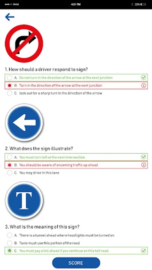 The app also has timed questions that are set according to the traffic department. The total available time to write the test is 1 hour or 60 min.