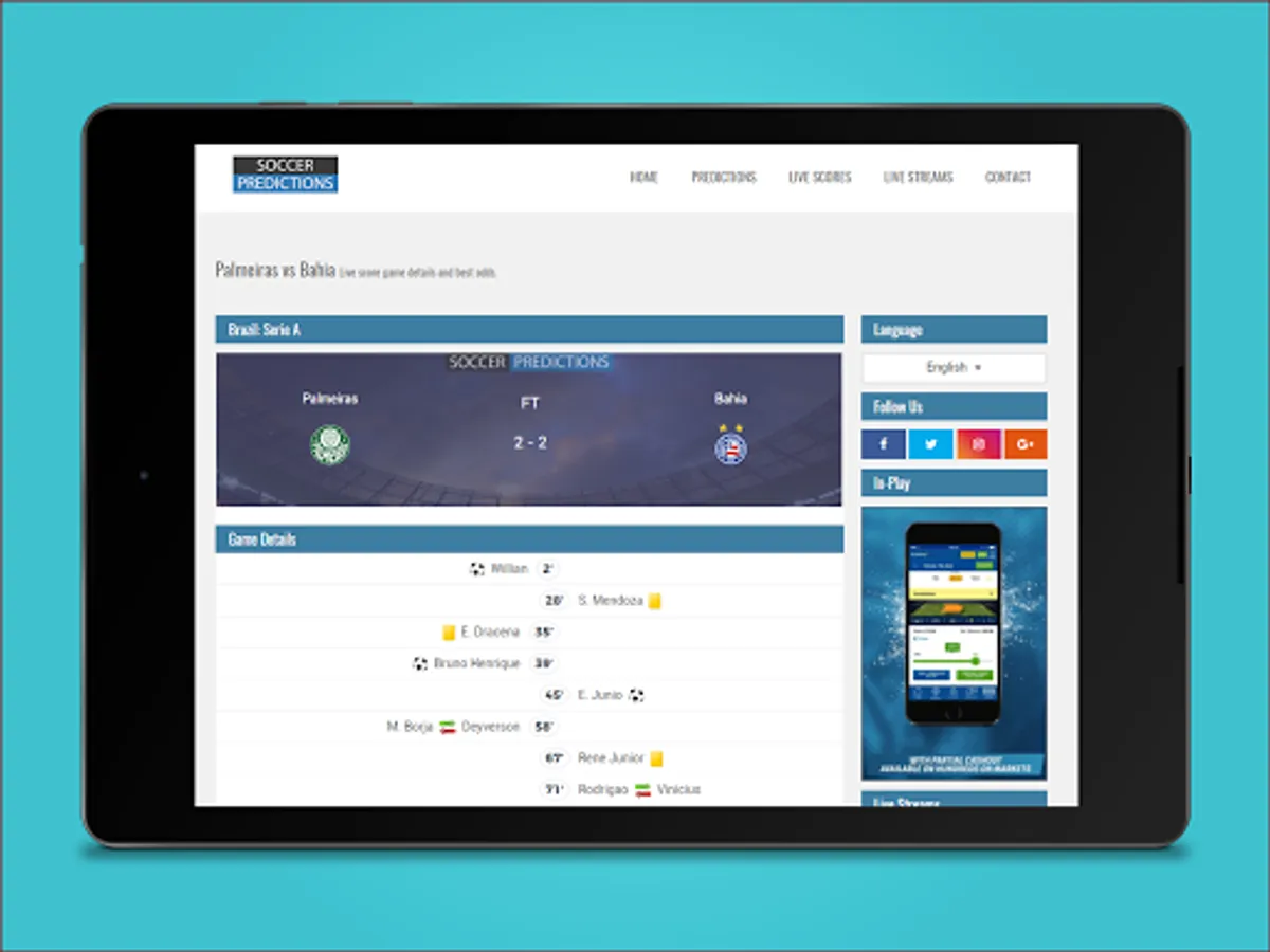 Soccer Predictions & Betting Tips app provides match analysis for 1x2, Over & Under, correct score and BTTS. Stay updated with the latest scores and results from all football events.