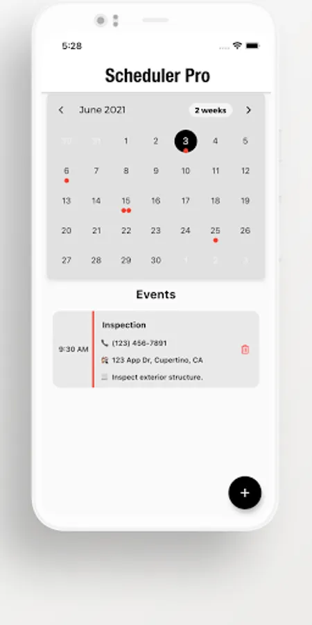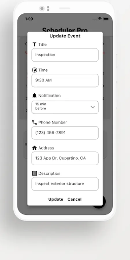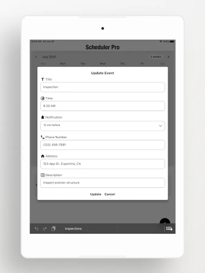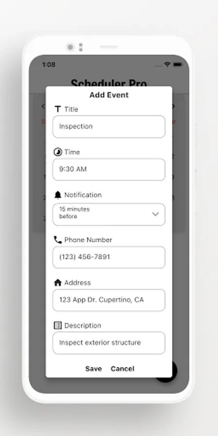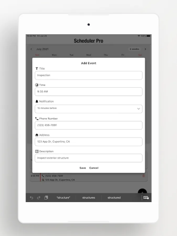 To help you stay organized throughout your day, Work SchedulerPro contains specific fields for adding phone numbers, event times, addresses, and descriptions.