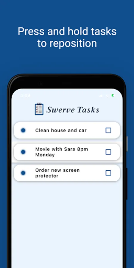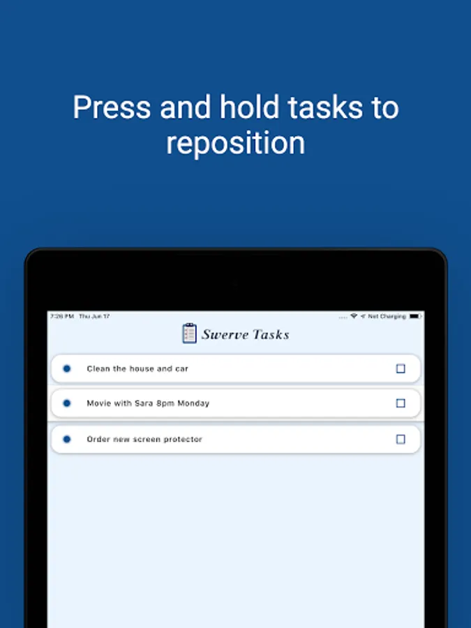 A single-screen allows for adding, editing, checking off, repositioning, and deleting tasks. It's a simple and clean to-do list that celebrates every task you complete.