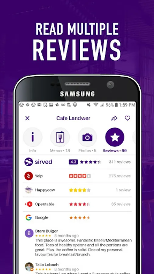 Sirved is the best menu app on the market because of its powerful menu-based search engine. Sirved makes it easy to find your food by location, cuisine, craving or restaurant. You can also search by dietary needs which makes our iOS restaurant app unique amongst our competition. Sirved will provide critical restaurant information such as distance, address, contact info, photos and more. Read reviews and browse photos from multiple sources, so you can make an educated decision on where to eat, all in one app.