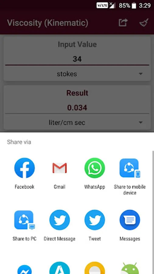 • Calculated value and result can be shared to social media, mail, messages and other sharing apps.