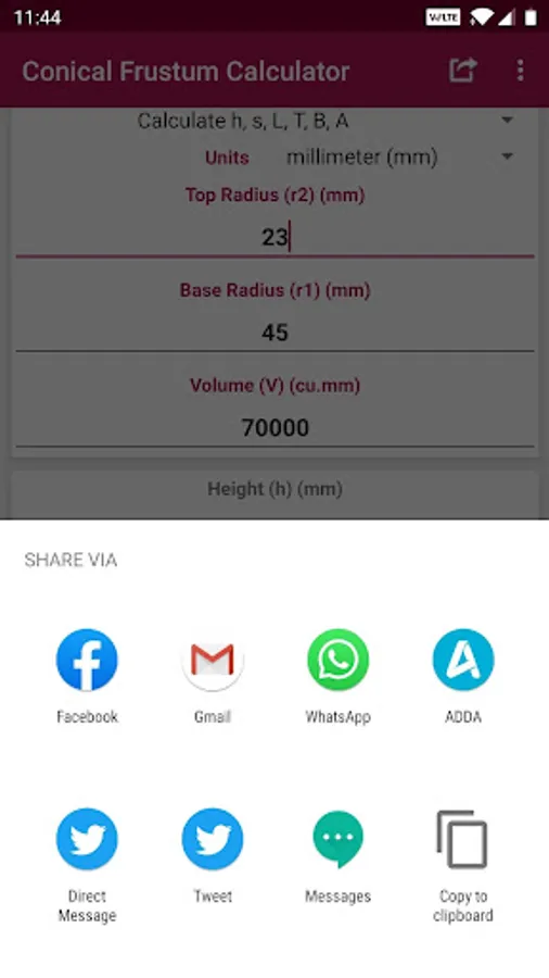 • Calculated values and results can be shared to social media, mail, messages and other sharing apps.