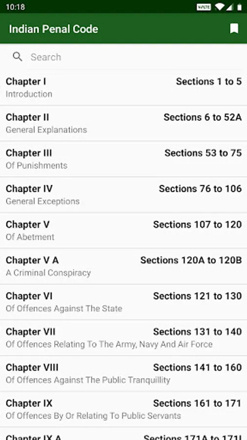 • Optimized Search options to retrieve information pertaining to any chapter name/number/contents or section name/number/contents of CrPC, IPC and IEA.
