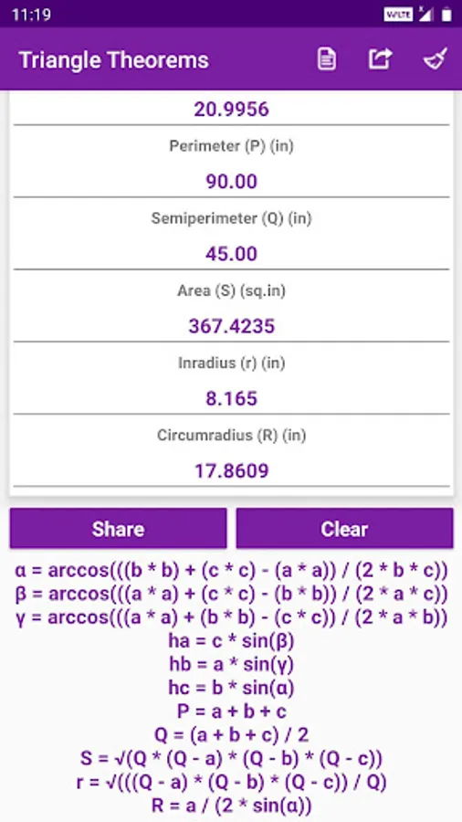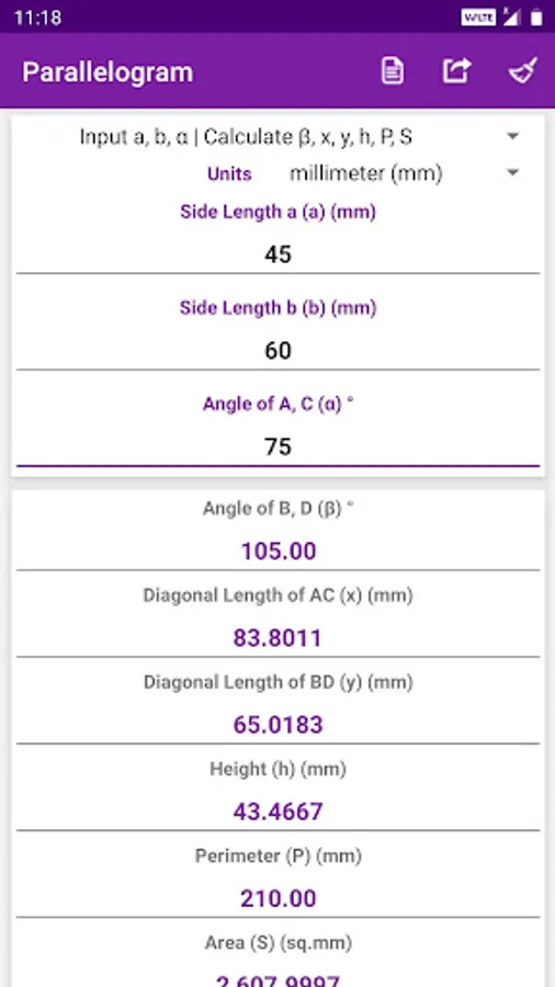 • Calculated values and results can be shared to social media, mail, messages and other sharing apps.
