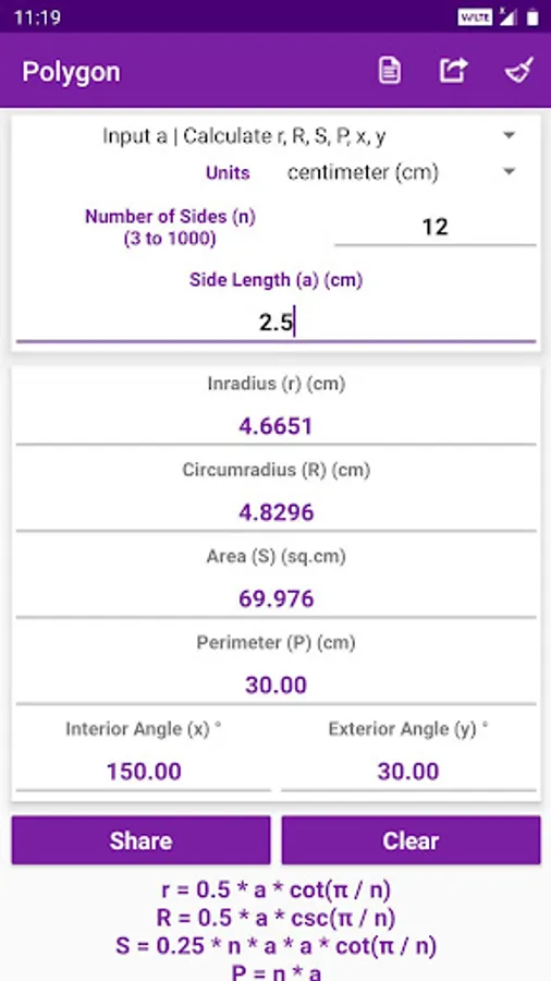 • Various types of inputs and calculations for all the shapes and solids.