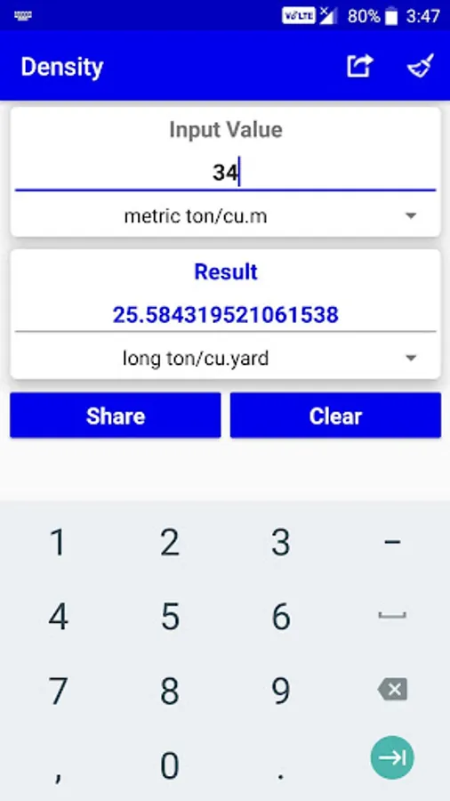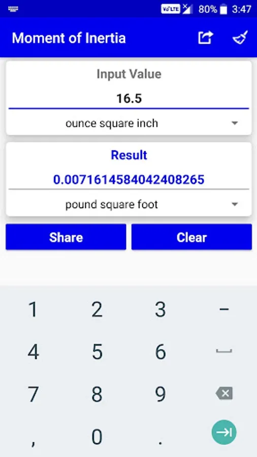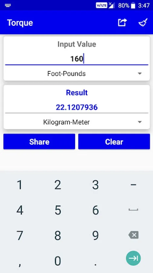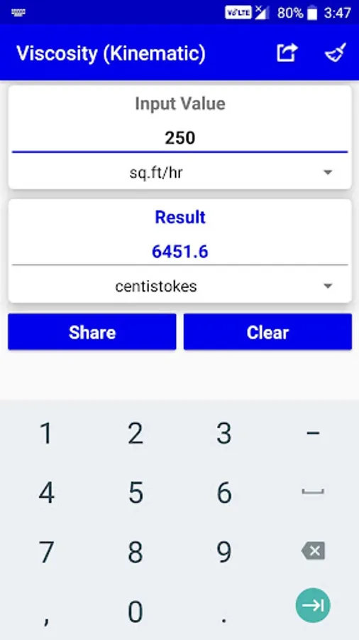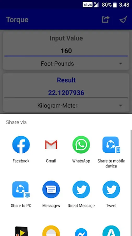 • Calculated value and result can be shared to social media, mail, messages and other sharing apps.