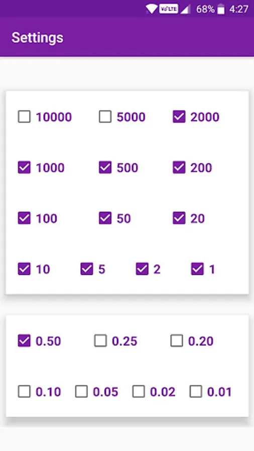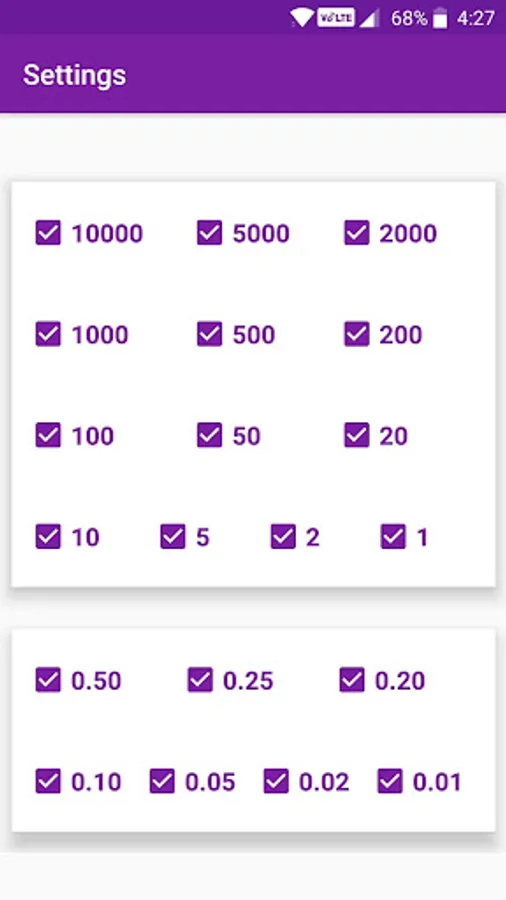 This app allows you to retain the denomination values at the time of exit. Values at the time of exit will be loaded back at the time of next use of the app.
