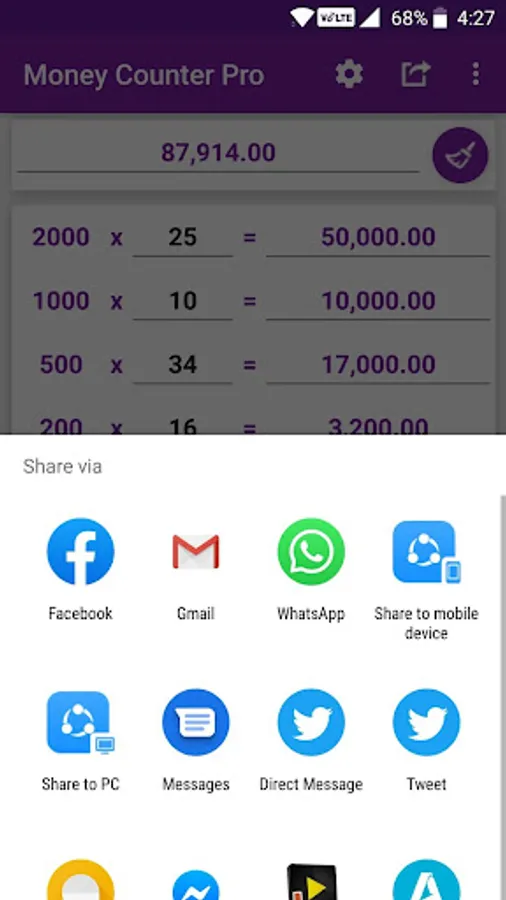 Calculated values and results can be shared to social media, mail, messages and other sharing apps.