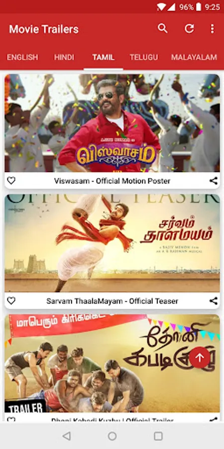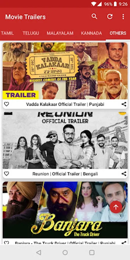 Movie Trailers provides you an enthralling option for watching movie trailers, teasers, promos, first look and motion posters of 10 different languages.