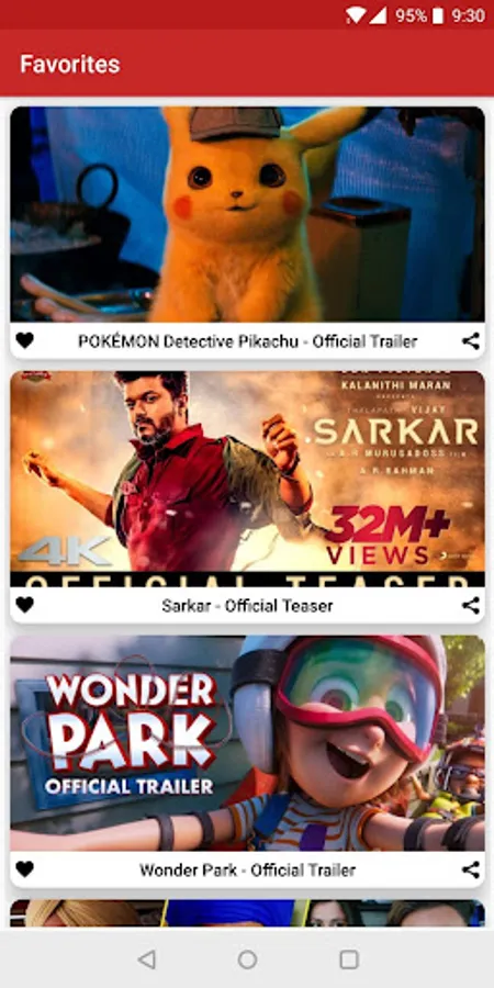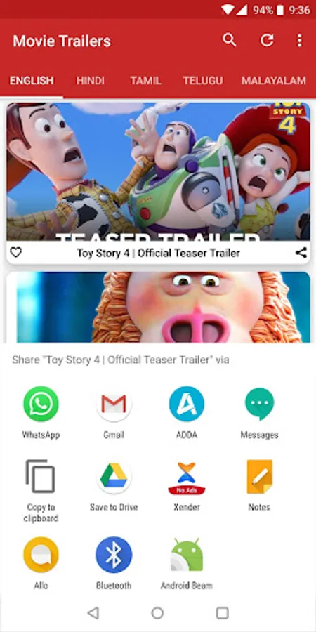 • Option to share every trailer details/links in social media, mail, messages and other sharing apps.