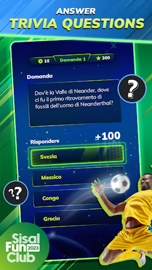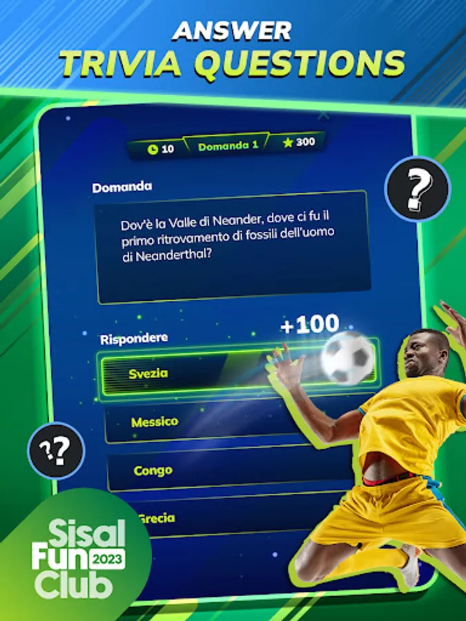 Many questions about football and other sports await you in SisalFunClub! Answer questions, guess who the mysterious player is, and, if you answer correctly, win coins that will help you advance in your career! The app contains hundreds of questions about players, football championships and other sports trivia! But the fun doesn’t end there: You can also test your knowledge about movies, TV, culture and geography!