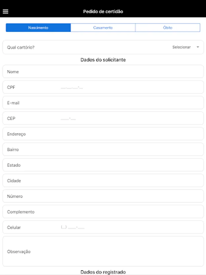 Cartório de Registro Civil de Screenshots