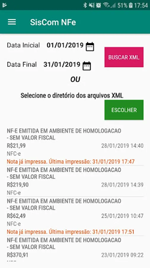 Application to find NF-e and NFC-e from the server previously configured and synchronized with SisCom and print on 80mm bluetooth thermal printers.