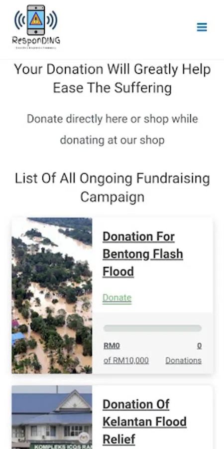 This application is a mobile version of our webapp, ResponD!NG, this app features fundraising events, volunteering, charity sales and many more. This app is intended to help the people who are affected by disasters happening all over Malaysia.